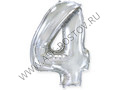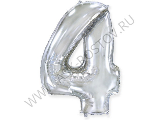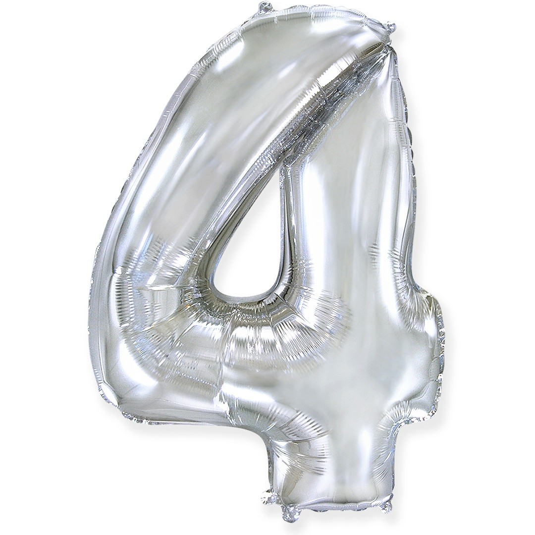 Шар (40''/102 см) Цифра, 4, Серебро, Металлик, 1 шт. в уп.