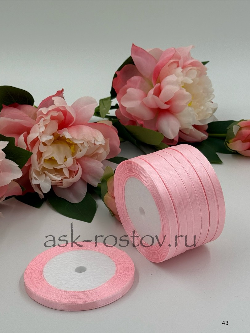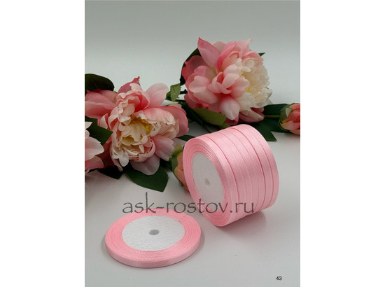 Лента атласная (0,6 см*22,85 м) Нежно-розовый, 1 шт.