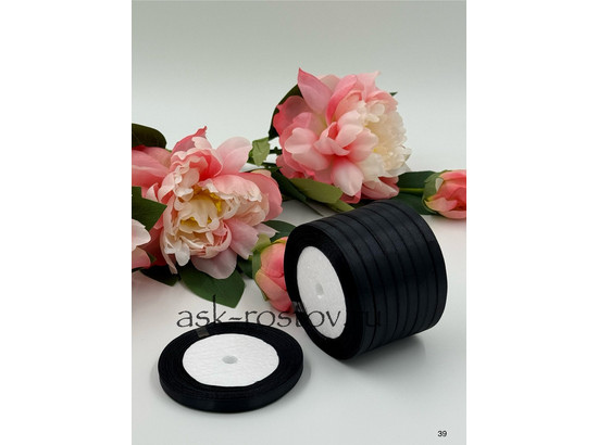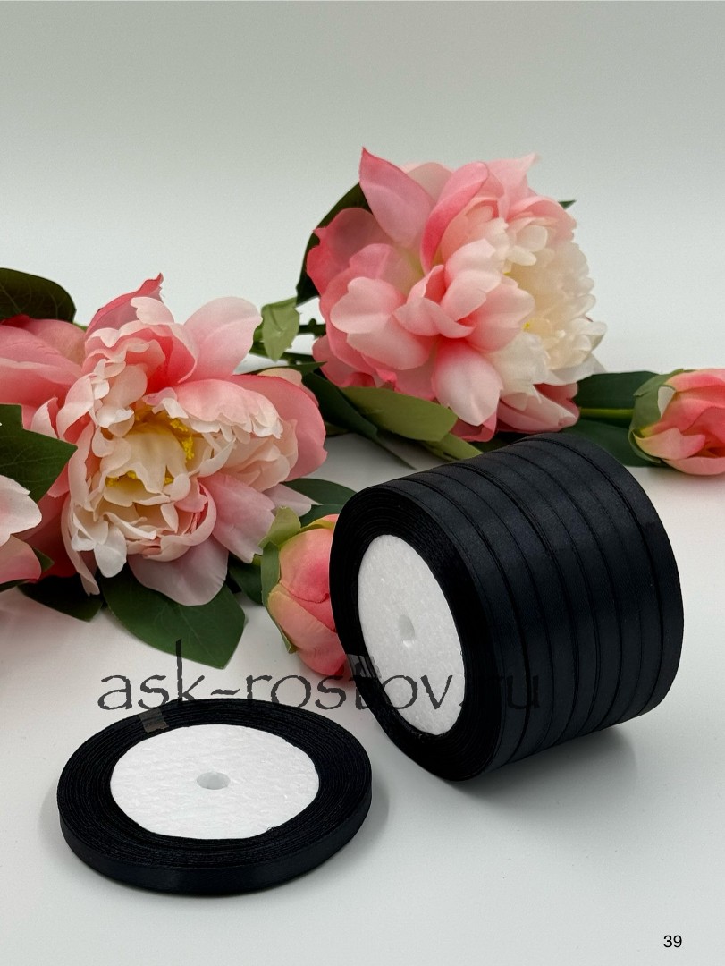 Лента атласная (0,6 см*22,85 м) Черный, 1 шт.