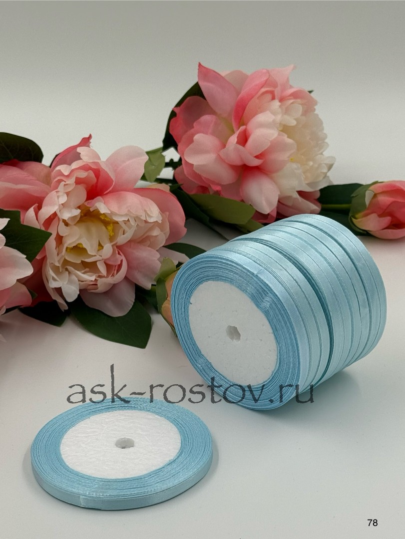 Лента атласная (0,6 см*22,85 м) Светло Голубой, 1 шт.