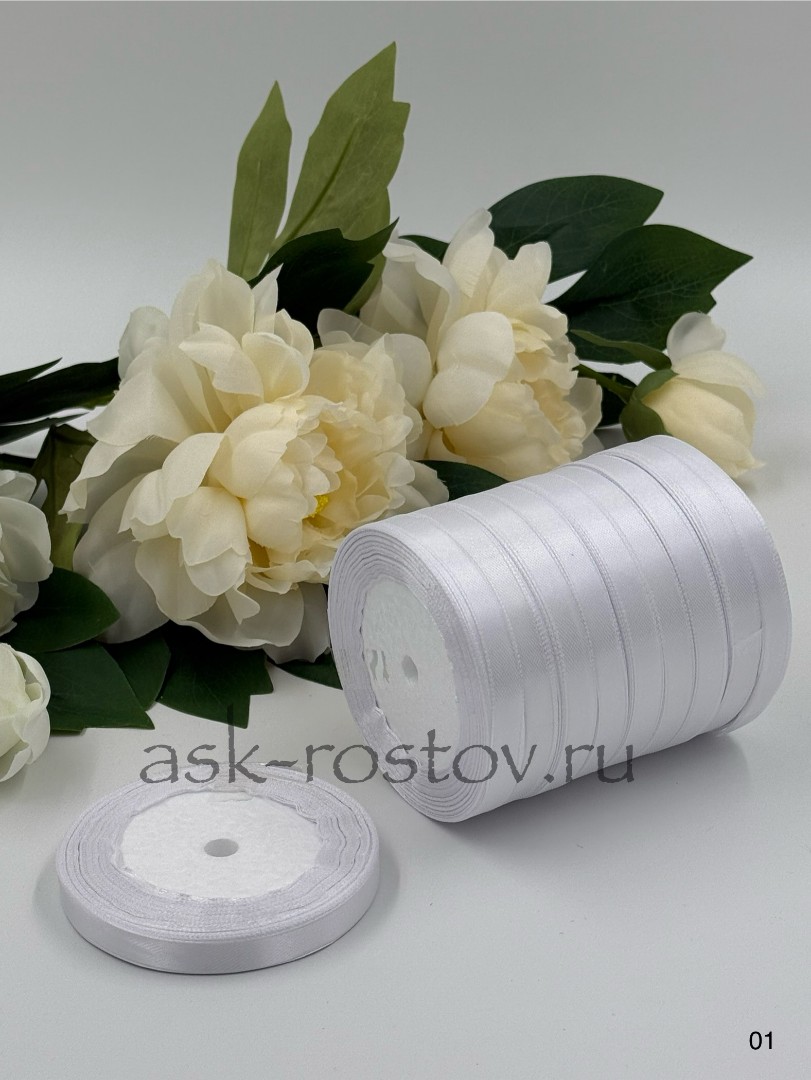 Лента атласная (1,0 см*22,85 м) Белый, 1 шт