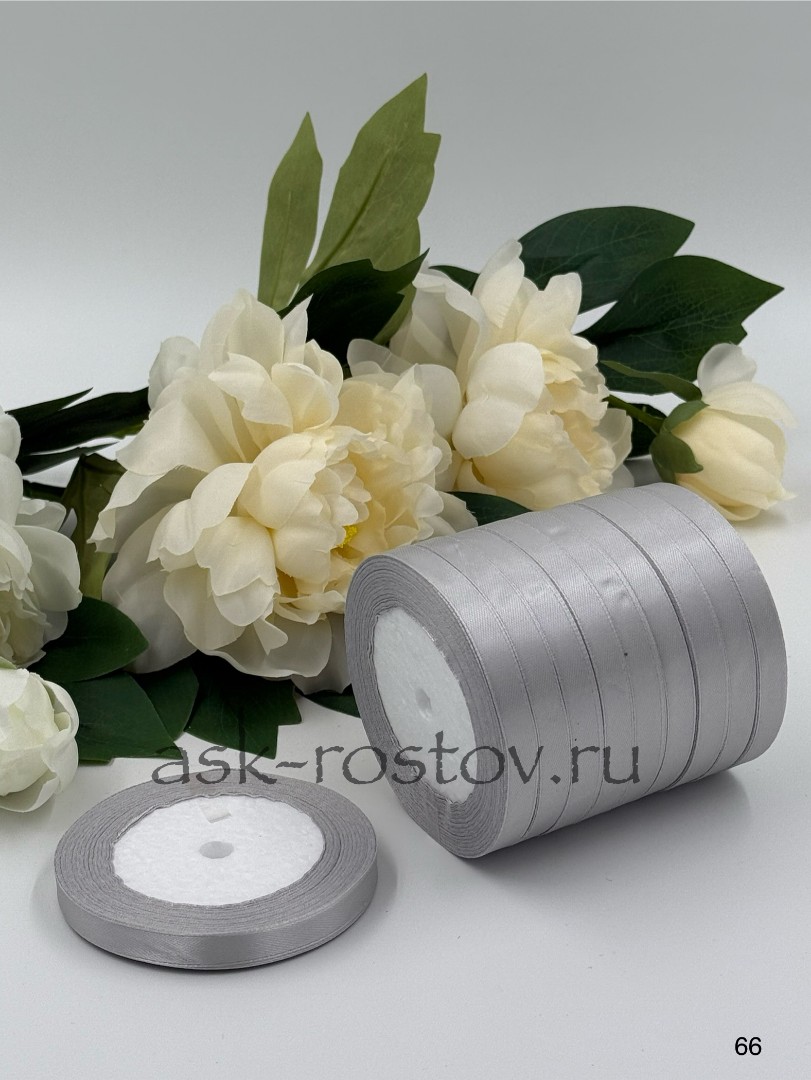 Лента атласная (1,0 см*22,85 м) Серебро, 1 шт.
