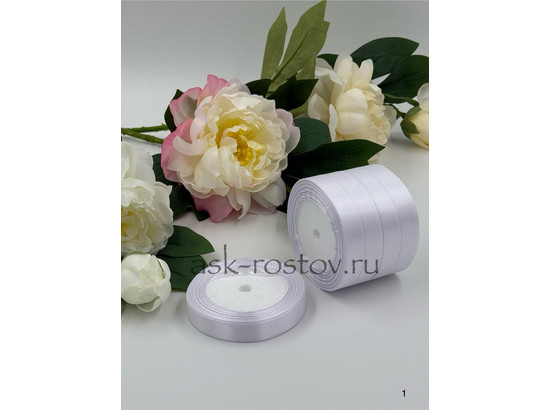 Лента атласная (1,5 см*22,85 м) Белый, 1 шт