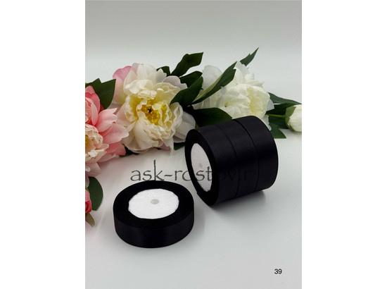 Лента атласная (2,5 см*22,85 м) Черный, 1 шт.