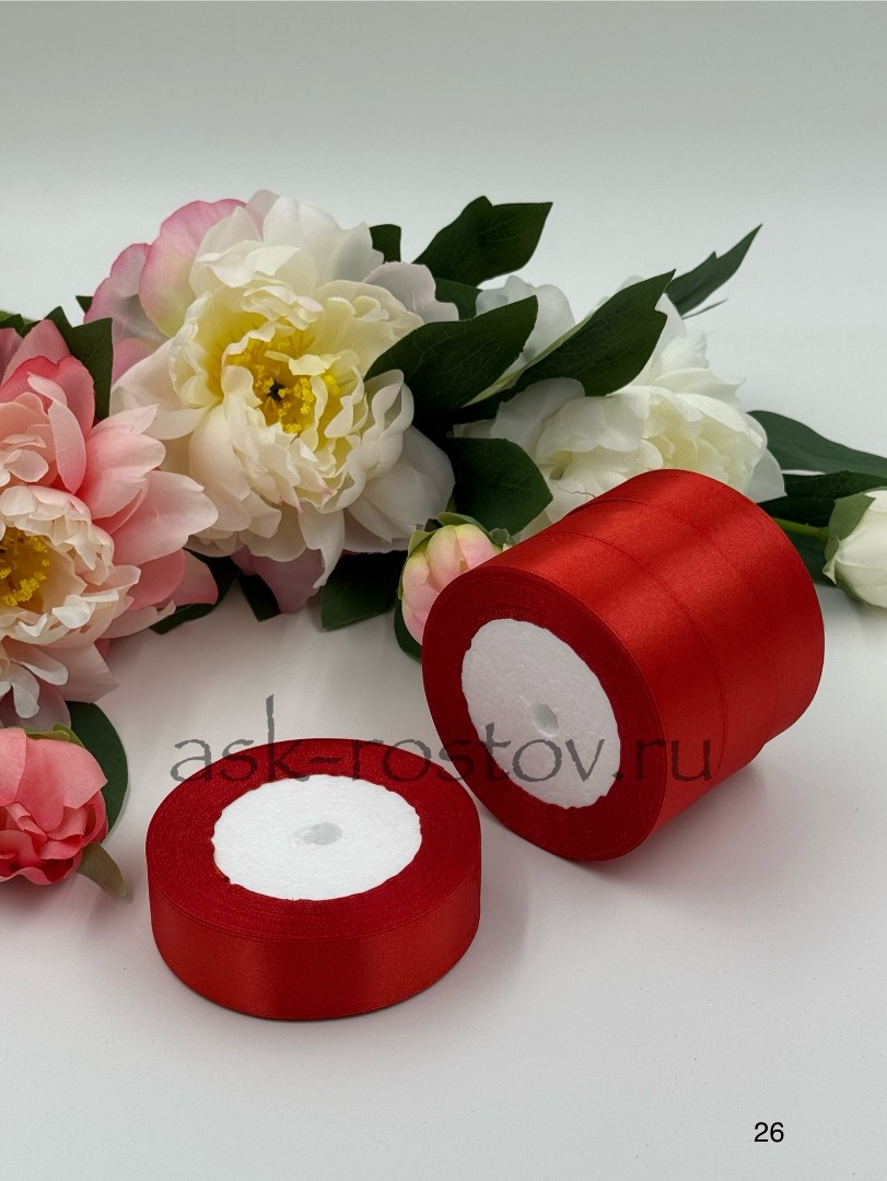 Лента атласная (2,5 см*22,85 м) Красный, 1 шт.