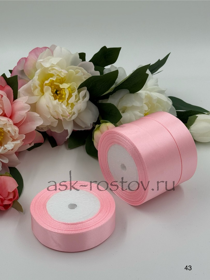 Лента атласная (2,5 см*22,85 м) Нежно-розовый 1 шт.