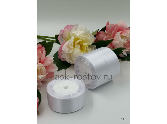 Лента атласная (4 см*22,85 м) Белый, 1 шт.