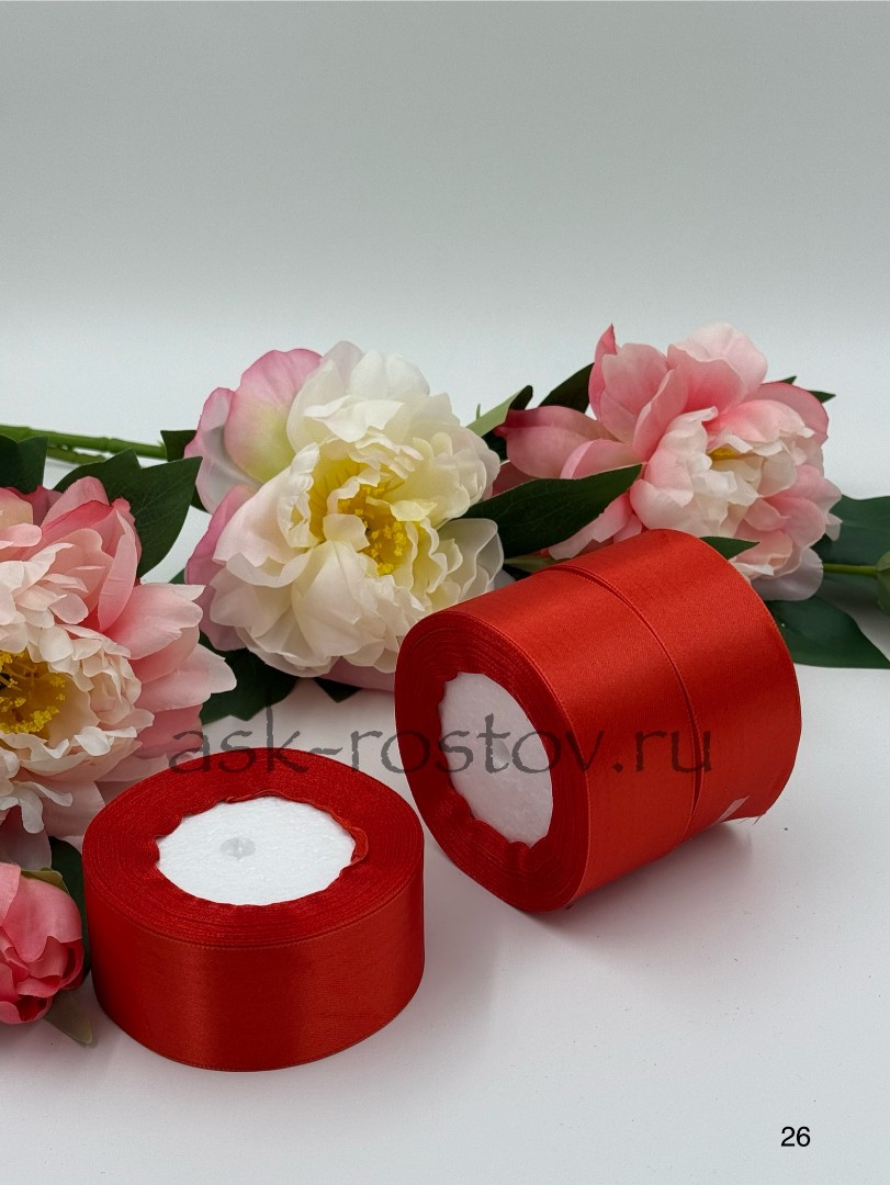 Лента атласная (4,0 см*22,85 м) Красный, 1 шт.