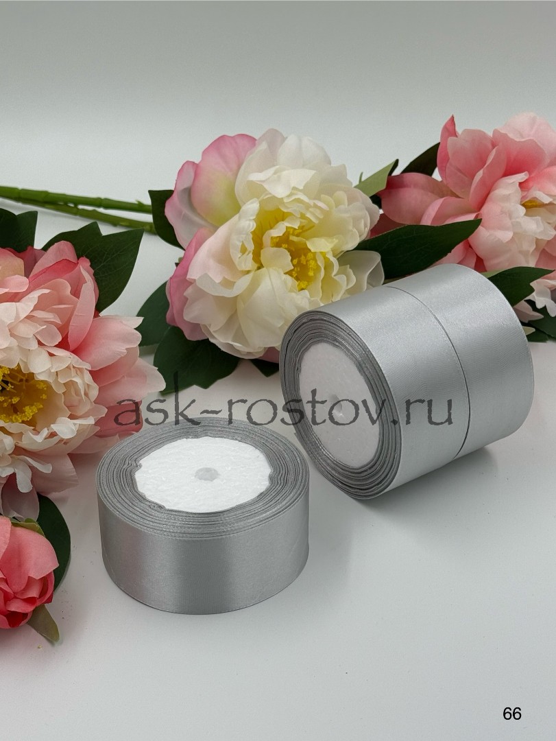 Лента атласная (4,0 см*22,85 м) Серебро, 1 шт.