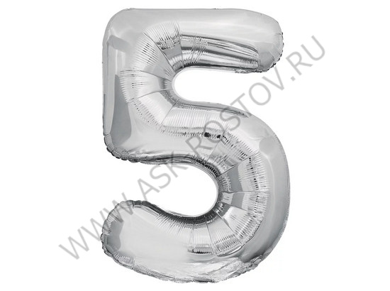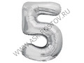 Шар (32''/81 см) Цифра, 5, Серебро, 1 шт. в уп.